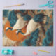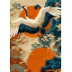 This elegant artwork features two graceful cranes perched atop a pine-laden branch, rendered in a richly stylized, East Asian-inspired aesthetic. The cranes have pristine white bodies, contrasting black necks, and striking red crowns—symbolizing longevity and good fortune in many cultures. Behind them glows a large, vivid orange sun, anchoring the scene with warmth and balance. Wisps of swirling blue and beige clouds drift across a pale sky, creating a dreamy, almost ethereal atmosphere. The blue-green pine needles add texture and vibrancy, bringing the entire composition into harmonious focus. It’s tranquil, symbolic, and beautifully composed—a timeless nod to nature’s elegance.