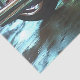 This stunning custom-painted motorcycle, captured in macro photography, showcases an intricate and vibrant paint job. The detailed illustrations and bold colours, including shades of blue, orange, and yellow, create a visually striking effect. Set against a wet street at night, the reflections of city lights on the pavement enhance the glossy finish of the motorcycle, making it appear almost glowing. This photograph beautifully highlights the artistry and craftsmanship of custom bike design.