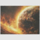 planet in flames, apocalyptic Earth, fiery planet, chaotic space, catastrophic event, burning planet, cosmic disaster, orange and yellow hues, planet destruction, science fiction
