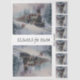 This enchanting winter collage showcases a vintage steam locomotive gliding through a snowy forest under a glowing full moon. Adorned with festive wreaths and garlands, the train radiates holiday cheer as a joyful dog races alongside, adding playful energy to the serene scene. With mirrored layouts and coaster-sized versions, this design is perfect for seasonal crafting, gift sets, or whimsical storytelling.