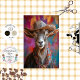 This whimsical close-up portrait features a fashionably dressed goat wearing a brown leather hat and a colourful scarf. Set against a vibrant abstract background with streaks of red, purple, yellow, and blue, the image captures the playful and creative essence of animal photography. Perfect for illustrating themes of humour and uniqueness, this delightful artwork by RHDesigns of 2chattychicks showcases the charm and personality of farm animals in a fun and imaginative way.