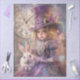 This mesmerizing steampunk fantasy artwork features a young girl dressed in an elegant Victorian-inspired purple gown, adorned with intricate lace details. She wears a grand, embellished top hat decorated with roses, gears, and golden accents, evoking a whimsical, Alice in Wonderland aesthetic. By her side sits a charming white rabbit, adding an element of magic and mystery. The vintage clock background, softly blended with artistic textures and pastel hues, enhances the dreamlike quality of this enchanting piece. Perfect for fans of steampunk, fairytales, and Victorian fantasy, this artwork brings a sense of wonder and nostalgia to any space.