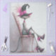 A slender cat lounges with aloof elegance, dressed in a crooked witch hat adorned with pink feathers and a rose. Polka-dot heels, a pink bow, and a decorative chair complete the look. Perfect for decoupage, mixed media, or furniture art that celebrates feline fashion, gothic whimsy, and personality-packed storytelling.