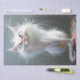 This digital art piece features an anthropomorphized long-haired white cat with striking yellow eyes and a grumpy expression. The cat stands upright against a simple grey background with colourful paint splatters at the bottom edge, highlighting its fluffy fur and unique personality. The illustration captures a blend of realism and whimsy, making it a charming and eye-catching piece.