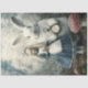 This hauntingly beautiful Alice Adventures in Wonderland-inspired artwork features a young girl dressed in a vintage blue Victorian dress with a white apron, standing beside an oversized white rabbit holding a pocket watch. The mystical forest setting, surrounded by towering toadstools and misty trees, creates an ethereal, fairytale atmosphere. The girl's solemn expression and the rabbit's watchful gaze add an air of mystery and timeless wonder. With a blend of fantasy, gothic, and storybook aesthetics, this piece is perfect for lovers of dark fairytales, surrealism, and whimsical fantasy art.
