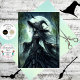 She rises beneath the full moon’s glow, cloaked in a sweeping black gown that trails like shadow and smoke. Her corseted bodice and tattered sleeves speak of elegance and edge, while her pointed hat—adorned with roses and feathers—crowns her with regal mystery. Wind tousles her long, wavy hair as a lone raven soars past silhouetted trees, echoing the magic she commands.