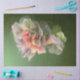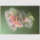 The image features a beautiful image of a woman adorned with intricate floral designs. The statue stands gracefully, surrounded by delicate, translucent petals in shades of pink, green, and white. The petals are adorned with fine, swirling lines and sparkling details, creating a sense of movement and ethereal beauty. The background is a gradient of green, enhancing the vibrant colours of the floral elements. The statue's serene expression and elegant pose add to the overall beauty and artistic value of the image.