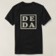 Deda T-Shirt. This adult t-shirt is a perfect gift for any grandfather who is called Deda instead of Grandpa. (Deda means grandfather or grandpa in Russian.) The black and white / cream square design, which says Deda, is simple, minimalist, sleek, clean, modern, and contemporary.