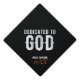DEDICATED TO GOD COOL CUSTOMIZABLE WHITE TEXT GRADUATION CAP TOPPER