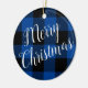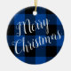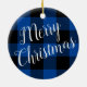 Deep Blue and Black Buffalo Plaid Merry Christmas Ceramic Ornament