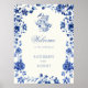 Deep Blue Chinoiserie Vintage Floral Wedding Poster