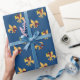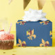 This deep blue crawfish Fleur de Lis wrapping paper features large Fleur de Lis symbols in an orange gold with two cute crawfish, one playing the sax and one cheering him on!
