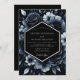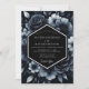 A dramatic design features opulent deep blue blossoms and dark foliage, creating a moody and sophisticated atmosphere. The rich colour palette evokes a sense of timeless romance.