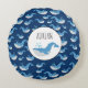 Deep Blue Ocean Whale Pattern Custom Name Round Pillow
