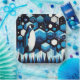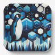 The design with a penguin in a deep natural forest. Deep blue and cobalt colours, hexagons, and a Bauhaus-inspired geometric pattern. The mood is bold, dynamic, and structured, resonating with themes of precision, connectivity, and industrial style.