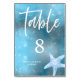 Deep Blue Sea Summer Wedding Table Number