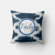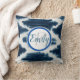 Deep Blue & White Shibori Tie Dye Monogram Name Throw Pillow
