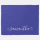 Deep Blue White Short Curly Swash Signature Name Fleece Blanket