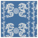 Gorgeous fabric with Asian motifs. Lines of bamboo separate the main pattern of dragons and a Chinese medallion. In indigo blue and white.