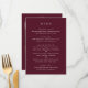 Deep Burgundy Elegant Classic Wedding Menu