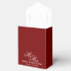 Deep dark burgundy red wedding favour boxes with white bow. Perfect for thanking guests with a sweet treat or gift. Classy typography template for couple getting married. Change quantity to get the cheap bulk price. Beautiful formal template for high end luxury wedding. Personalize with MR and MRS name. Adjust HEX colour to match your colour scheme.