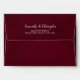 These beautiful burgundy wedding envelopes are perfect for making your invitations all the more special. They feature a romantic design on the inside flap with a single long stemmed burgundy, maroon, or wine red coloured rose reflecting in a pool of water. The back flap has your return address in lacy script calligraphy. Sophisticated and chic, these envelopes will add a touch of class to any mailing.