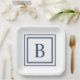 Clean, modern white background with double ribbon square border design and customizable monogram in the centre. Double sided design. Personalization options available for select products