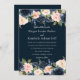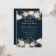 Deep Navy Blue Blush Botanical Wedding Invitation