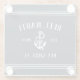 Add a cool custom touch to your fishing boat, sailboat, yacht, or houseboat with these personalized glass coasters. Nautical design in deep, rich navy blue features your boat name, year established, and ship's registry in rustic white lettering with an anchor illustration in the centre.