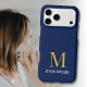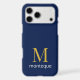 This deep navy personalized product features a classic gold monogram with a custom cream name placed below, making it a refined luxury custom gift for her. The rich navy background combined with the smooth gold letter creates a bold yet timeless contrast without any glitter effect.