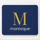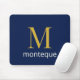 Deep Navy Gold Monogram Personalized Name Luxury Mouse Pad