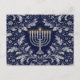 Deep Navy Menorah William Morris Pattern Postcard