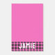 Deep pink sticky notepad personalized with your name in large white bold letters at the bottom of the notepad against a background of deep pink buffalo check. Personalized notepad with a pink buffalo check detail, your name in large bold letters, and a strong shade of pink that will make your notes and reminders hard to miss!