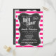 Deep Pink Horizontal Stripes; Chalkboard look Invitation Postcard