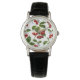 Watch in an all-over pattern of deep red cherries, adapted from vintage botanical prints, on a white background