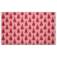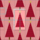 A simplified modern take on a classic Christmas tree motif, deep red quilted satin damask on a salmon pink background