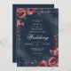 Rich, deep red blossoms frame a moody navy backdrop, creating a dramatic and elegant atmosphere. This design evokes a sense of refined romance and sophisticated charm. It's perfect for a classic and timeless union.