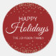 Deep RED Gold Glitter Confetti Happy HOLIDAYS Classic Round Sticker