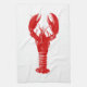 Hand towel in a digital sketch of a Lobster in deep red on a white background