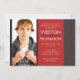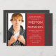 Deep Red & Pinstripe Grey Photo Graduation Invitation