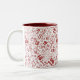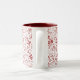 A chic Eighteenth Birthday Two-tone Coffee Mug, with a pattern of number 18s in Deep Red on a White Background; from a digital design by Judy Adamson.