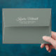 A deep sage green envelope with a text template on the back flap to personalize with your return address.