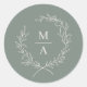 Deep Sage Simple Elegant Laurel Wreath Monogram Cl Classic Round Sticker