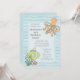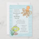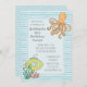 Whimsical submarine and octopus on nautical stripes for Birthday adventures, or baby showers. A happy crab and bubbles pattern complete the back of this fun and festive invitation.