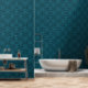The design is of a floral line artwork presented in an elegant pattern on deep sea green blue colour. The design allows for customization of the background colour to best match your space's colour palettes.