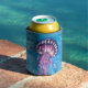 Original watercolor painting by Sandra Gale, featuring a large purple jelly fish or Medusa (male) with long floating tendrils that drift among the bubbles in the deep sea. Great design for anyone who loves sea creatures and our oceans' deep places. Makes a great gift for divers, surfers, beach bums or nature conservationists too!