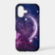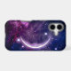 Protect your most crucial daily device with a premium accessory that radiates pure magical energy and deep cosmic beauty. This highly protective phone cover is beautifully decorated with a stunning, high-definition print of a glowing crescent moon floating in a vibrant purple and magenta space nebula. The dynamic starry scene turns your everyday smartphone into a mesmerizing piece of portable art, perfect for fans of astrology, astronomy, and celestial aesthetics. Make it truly unique by adding your name, initials, or zodiac sign to the designated text template area.