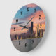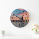 A deep sunset sets over the Chicago skyline and makes a stunning wall clock for home decor