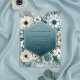 A romantic watercolor design features lush blooms and delicate foliage in deep teal, muted blues, and soft whites. Hints of ethereal succulents intertwine with classic floral elements, creating a sophisticated and serene atmosphere. This enchanting artwork evokes a feeling of tranquil, natural beauty.