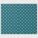 A festive wrapping paper featuring a dark teal blue background with shimmering silver stars in a repeat pattern.